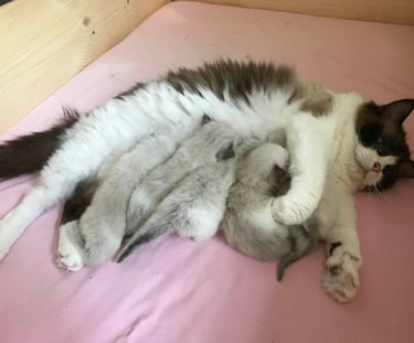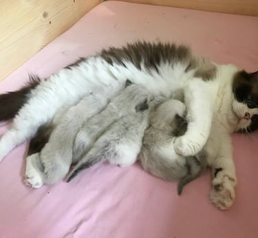 Vår "stamhona" i uppfödningen dvs. Smilla, tog jag min första kull på 2019.Hon parades med en hane från Granqvisten´s uppfödning som jag numera samarbetar med och vi samäger även en avelshane.Den 10/6 2019 föddes tre småttingar; Berlioz, Marie samt Toulose.